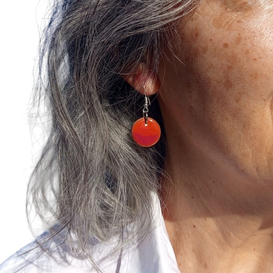 Pendientes redondos pequeños naranja y rojo